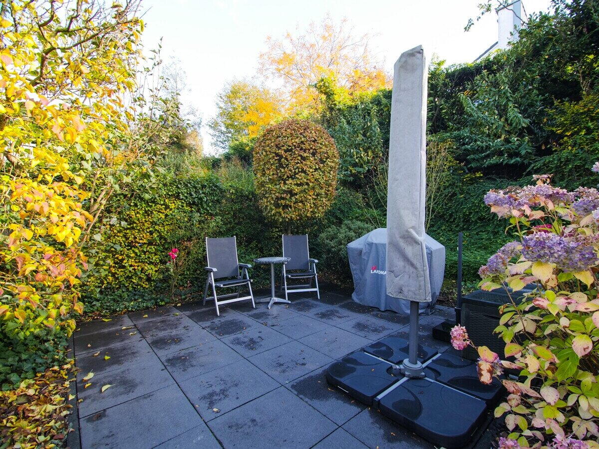 De liefdevol aangelegde tuin is een kleine oase met een overdekt terras, een zonneterras en volledige privacy. Een aparte zij-ingang biedt directe toegang tot de tuin – ideaal voor gasten of tuinonderhoud.
